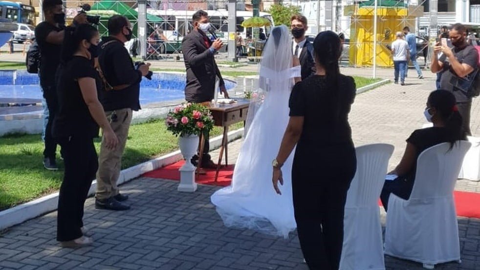 Um casamento simbólico foi realizado na manhã desta sexta-feira (07). De acordo com os participantes, o ato se deu em forma de protesto contra as medidas de restrição do distanciamento social devido a Covid-19, que mantém o setor de eventos sem funcionar. O fato ocorreu no centro da capital alagoana.