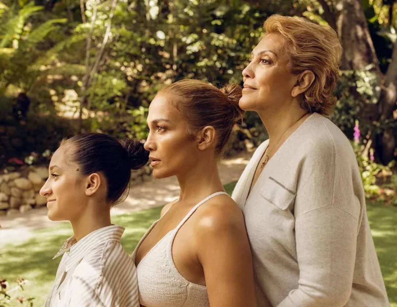 Jennifer Lopez posou ao lado da mãe, Guadalupe, e da filha, Emme, para as lentes de Ana Carballosa. A artista brincou com a genética. “Herdei da mamãe”, escreveu ela na legenda da imagem.